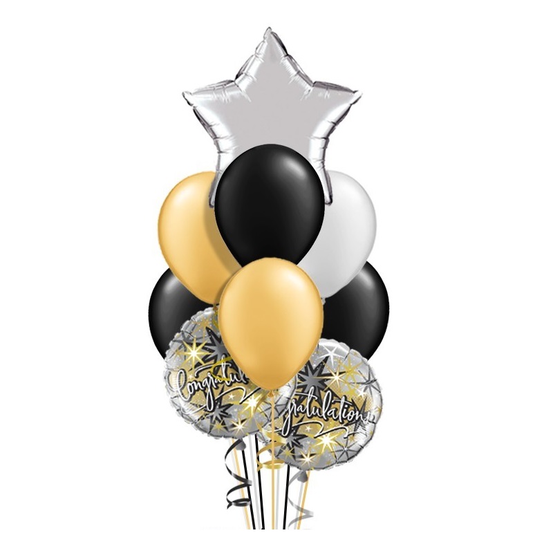 Šventinis helio balionų rinkinys „Sveikinimai“ – tai žaisminga ir universali dekoracija, tinkanti tiek vaikams, tiek suaugusiems. Balionai sukuria išskirtinę atmosferą ir tinka kaip dekoro elementas ar dovanos dalis. Lengva transportuoti, puošia šventės vietą iš karto be papildomo paruošimo. Komplektą sudaro: