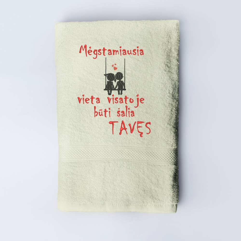 Полотенце упаковано в черную картонную коробку и папиросную бумагу. Коробка перевязана атласной лентой, что делает ее подходящей для дарения.